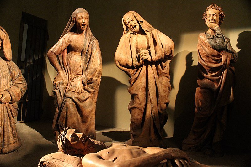 Questo tipo di rappresentazioni sacre dette “Compianti” ebbe grande diffusione in epoca rinascimentale: lo schema compositivo prevede Cristo al centro della scena, deposto senza vita dalla croce, disteso a terra, mentre attorno a lui sono disposti i personaggi che assistettero alla sua morte e si occuparono della sua sepoltura. Si tratta di opere che, già per loro stessa natura, suscitano un fortissimo coinvolgimento emotivo in chi le osserva: lo spettatore si sente parte integrante della scena, testimone impotente di un evento tragico che si svolge davanti ai suoi occhi. Nel Compianto di Niccolò dell’Arca, questa sensazione è portata all’ennesima potenza: il senso del dramma è tangibile nelle espressioni dei volti e nel dinamismo travolgente dei sei personaggi che accorrono a manifestare il loro dolore intorno al corpo di Cristo.