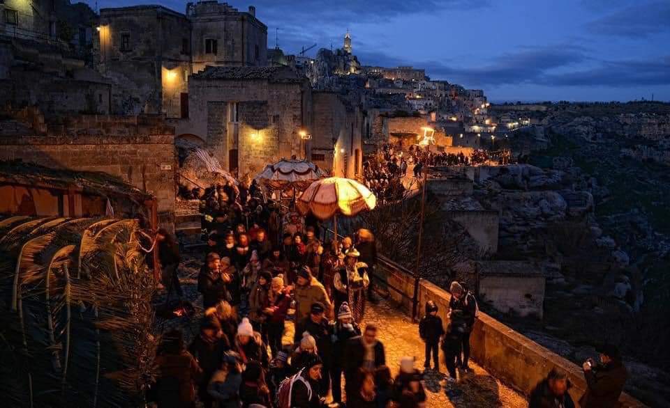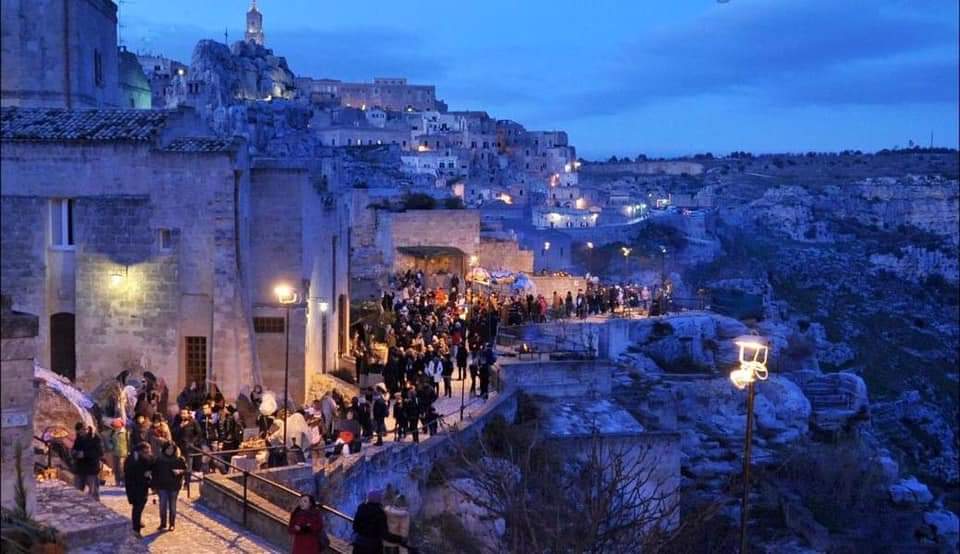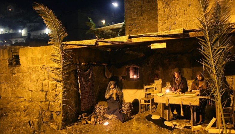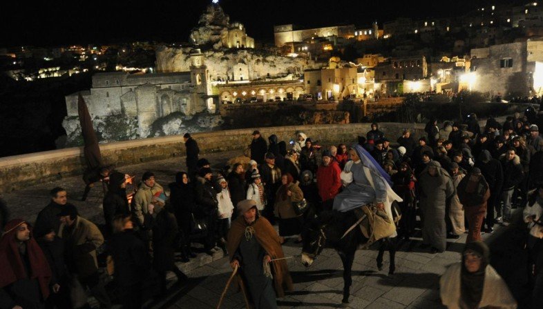 Quest’anno ha avuto luogo l’XI edizione della rappresentazione del presepe, inaugurata il 7 dicembre scorso e intitolata Hope for the future. Assistere al presepe vivente di Matera significa vivere un’esperienza teatrale itinerante lungo le stradine, le vie e le piazze del rione sassi. Immersi in un’atmosfera natalizia unica e suggestiva, gli spettatori sono accompagnati per circa un’ora ad assistere a varie rappresentazioni bibliche. Le rievocazioni presentate vanno dall’annunciazione alla natività, tutte interpretate da attori al fine di permettere allo spettatore di immergersi nello spettacolo. L’idea da trasmettere è quella di viaggiare nel tempo fino a 2000 anni fa nel luoghi legati alla vita di Gesù. A rendere ancora più bella questa rievocazione è la scenografia studiata per enfatizzare la bellezza dei luoghi scelti già coerenti con il tema.