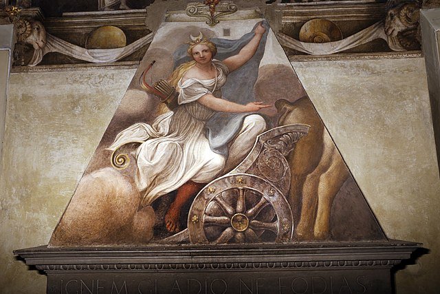 La lettura del significato della decorazione della Camera di San Paolo non incontra un’interpretazione univoca da parte degli studiosi. Erwin Panowsky, uno dei più grandi critici d’arte dello scorso secolo, considera la dea Diana la chiave interpretativa dell’intera iconologia, in quanto simbolo di castità verginale e per questo celebrata all’interno di un monastero femminile. Di certo, alla base della scelta del soggetto, sta il desiderio della Badessa di fare sfoggio della propria cultura umanistica e classica.