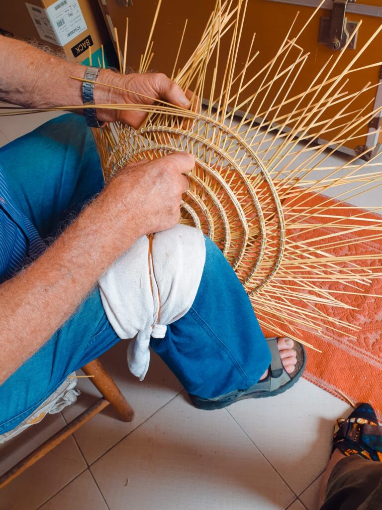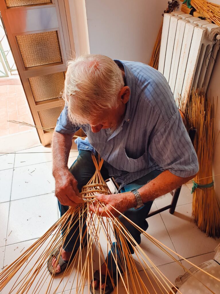 Tra questi artisti troviamo Antonio, che ci ha raccontato la sua storia: all’età di 12 anni decise di intraprendere il mestiere del padre pescatore, ma per farlo occorreva avere gli attrezzi giusti, che Antonio preparava da sé grazie ai consigli del padre, suo insegnante. Iniziò infatti una piccola produzione di nasse da pesca. Da lì nacque la sua passione e ben presto, dopo aver acquisito manualità, iniziò anche a creare cestini e contenitori su cui poggiare il pesce fresco pronto per essere venduto.