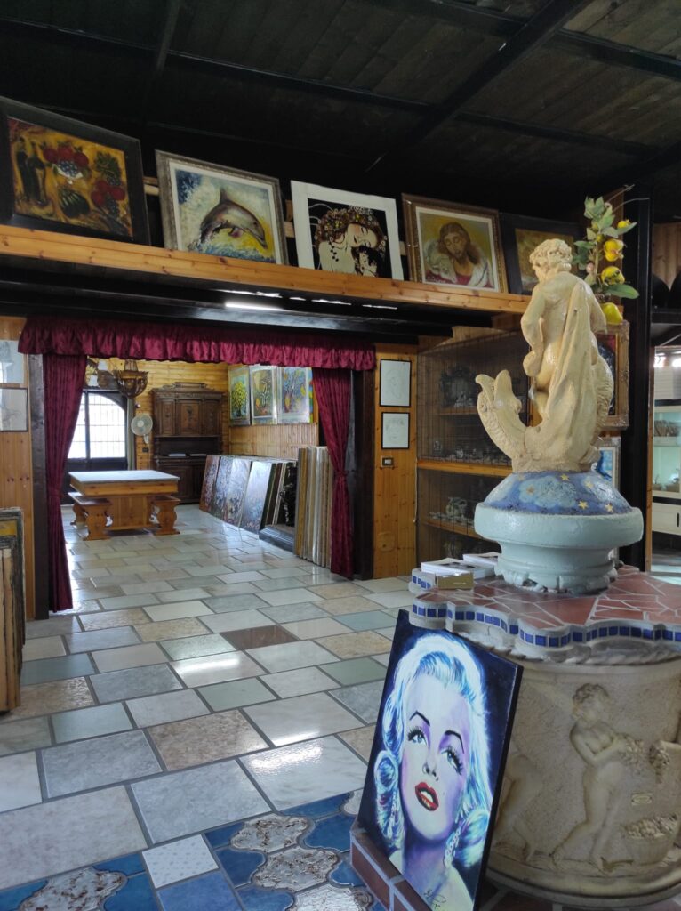 La galleria posta su due piani è colma di quadri che ogni giorno Vincenzo dipinge. Il maestro accoglie i visitatori che liberamente e senza il pagamento di un biglietto vanno a trovarlo, lui li ripaga con la possibilità di vederlo dipingere o intento a terminare uno dei suoi quadri. Inoltre ognuno è libero di scegliere e acquistare un’opera presente in galleria a proprio piacimento.